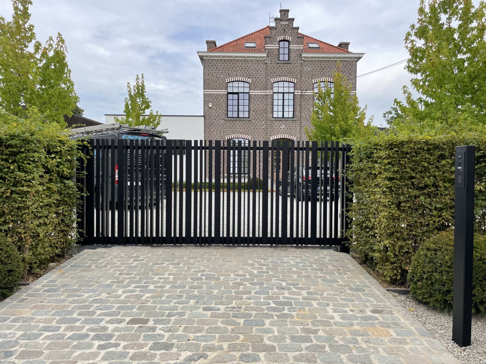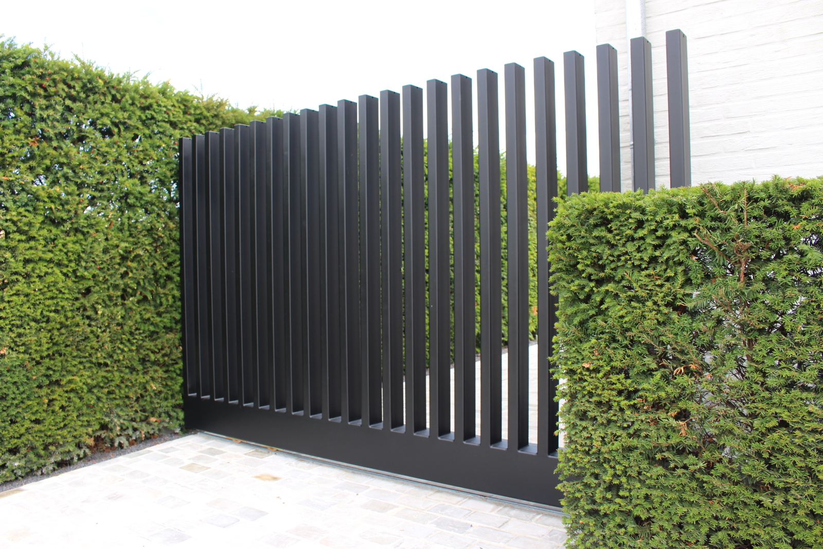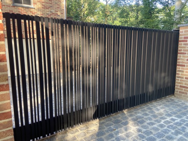 Wij maken schuifpoorten op rail of vrijdragend, in staal, aluminium of massief hardhout.